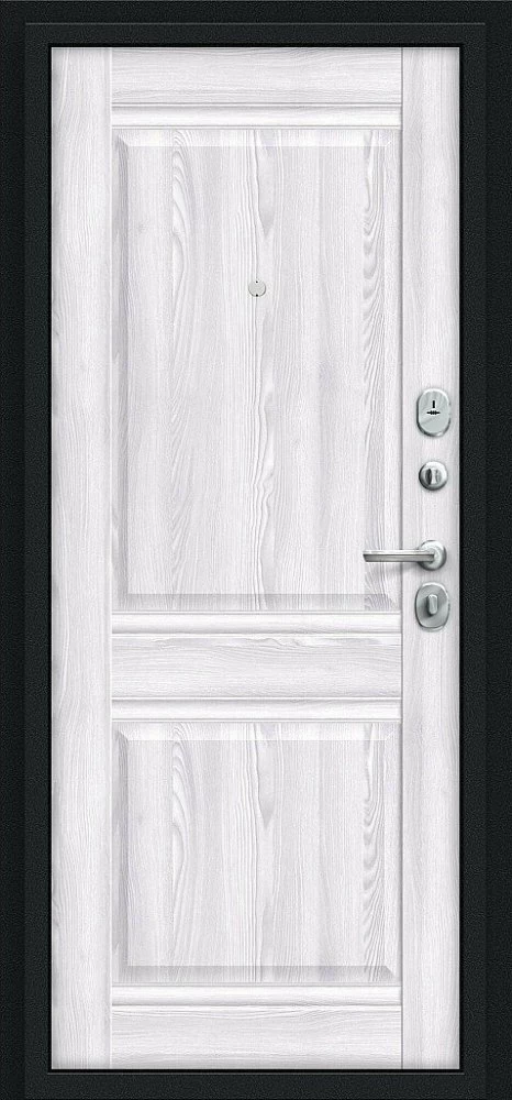 Надежная входная Дверь Браво Некст Kale Букле черное/Riviera Ice премиум класса по цене 31 170 руб. Большая толщина стали защитит от проникновения в ваш дом, квартиру или коттедж. Используется очень качественная фурнитура: замки, цилиндры, ручки, защелки. Покрытие и отделка двери изготовлено под внимательным контролем производителя. Дверь имеет долгий срок службы и гарантию.